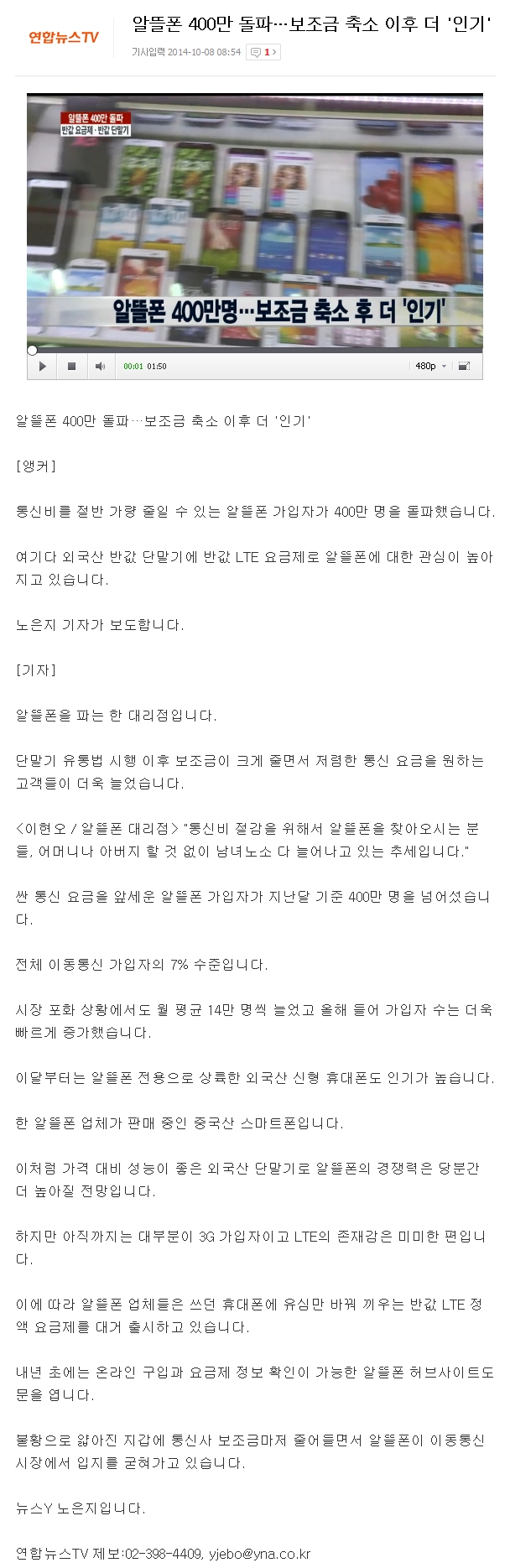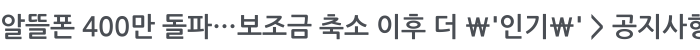 알뜰폰 400만 돌파…보조금 축소 이후 더 '인기' 페이지 정보 작성자 관리자 작성일14-10-08 10:58 조회4,586회 댓글0건 이전글 다음글 목록 본문 알뜰폰 400만 돌파…보조금 축소 이후 더 '인기' 댓글목록 등록된 댓글이 없습니다. 이전글 다음글 목록